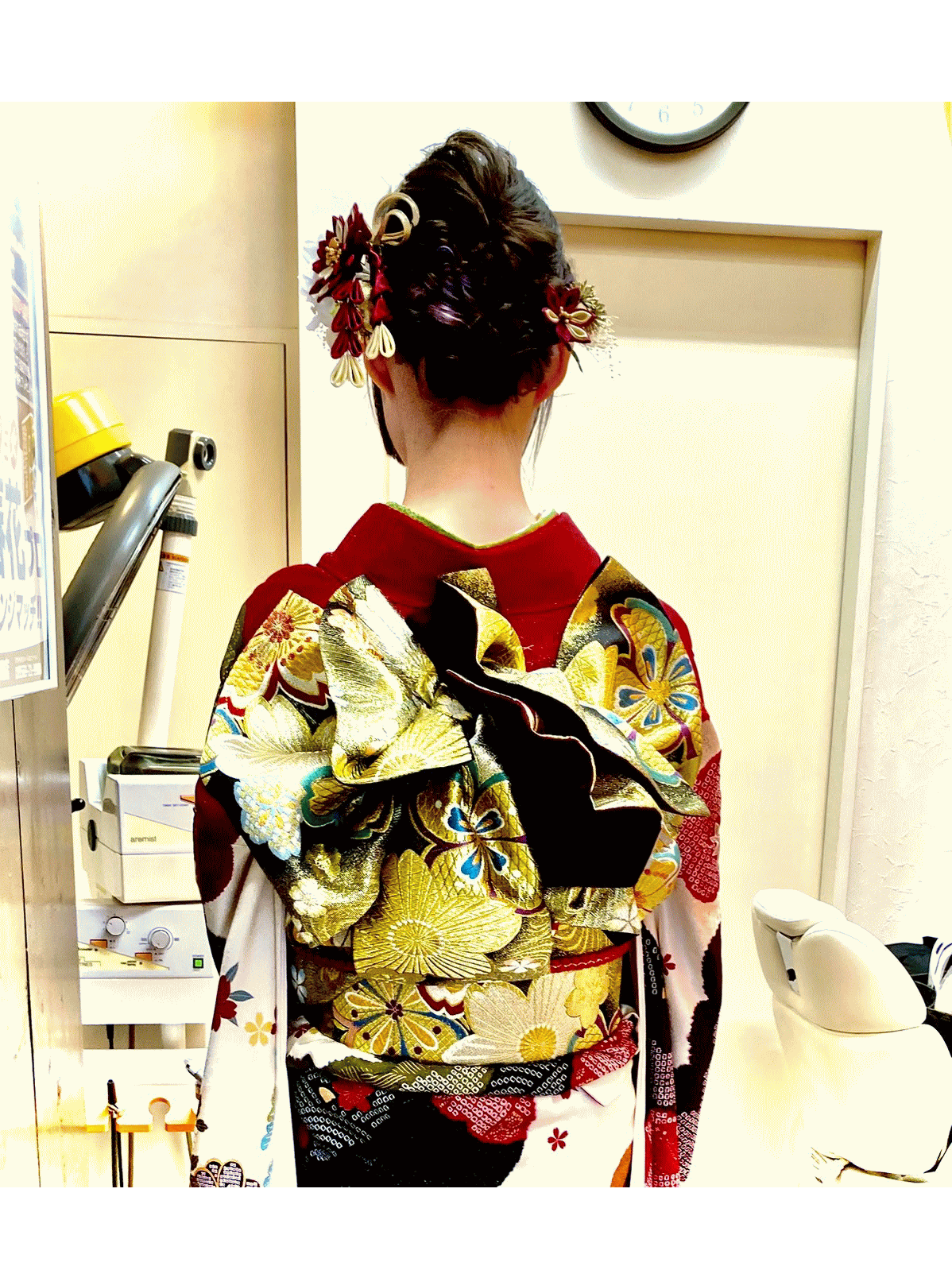 私どもの成人式着付けは、着物類は当日にお客さまが直接 美容室にお持ちいただくという形をとっています。