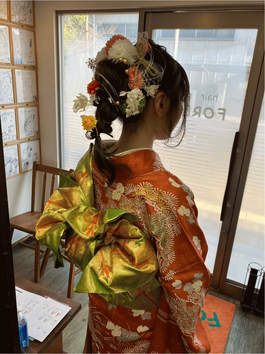 当日は、美容師と着付師の息の合ったコンビで、お客さまの思い出深い一日となりますよう、心をこめてお支度させていただきます。